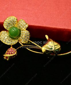 Trâm Cài Áo Đồng Xi Vàng Mix Ngọc Bích (VNB-TCA005)